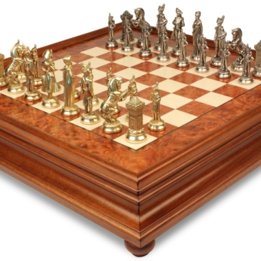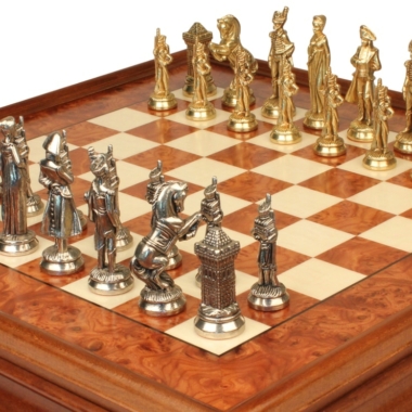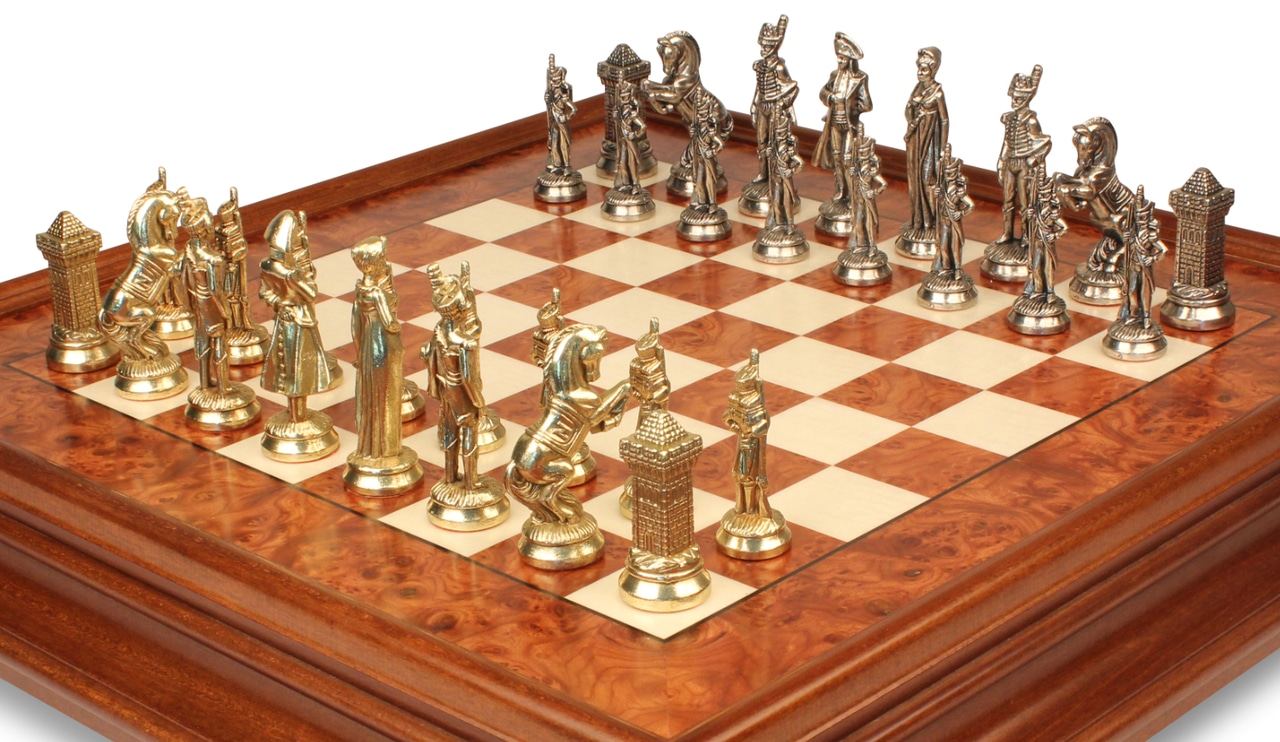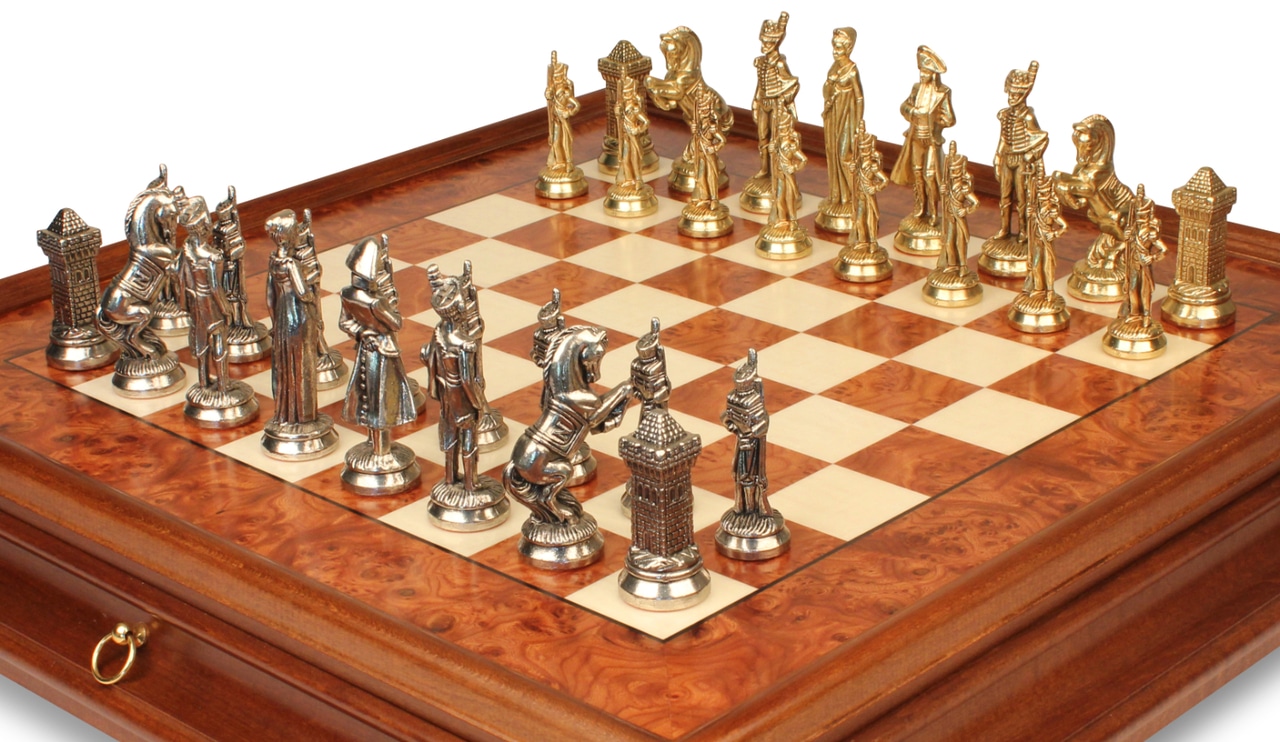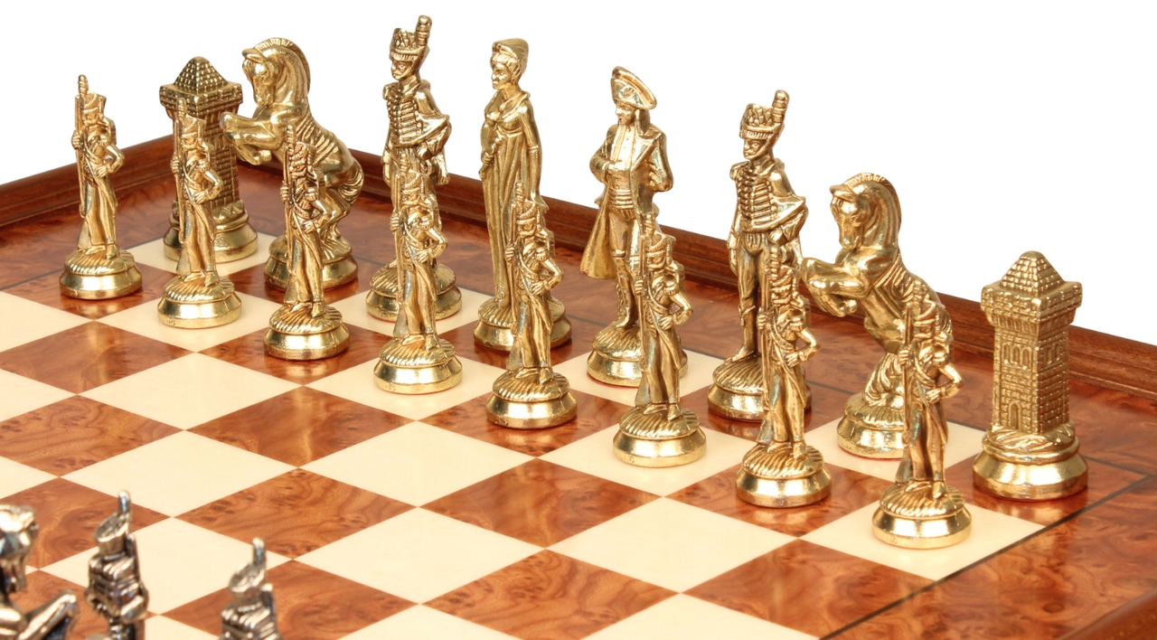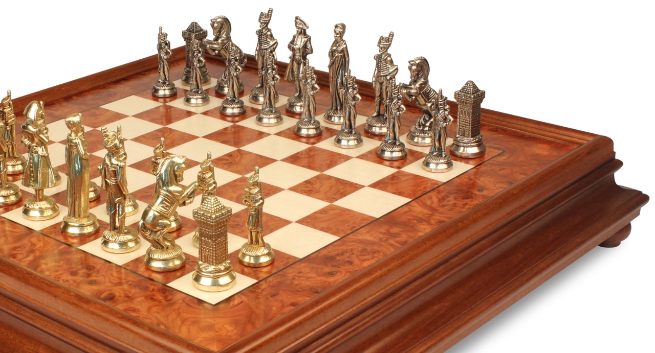 Juego de Ajedrez Napoleón – Tablero de Madera de Brezo y Madera de Olmo con Cajón & Piezas de Metal
