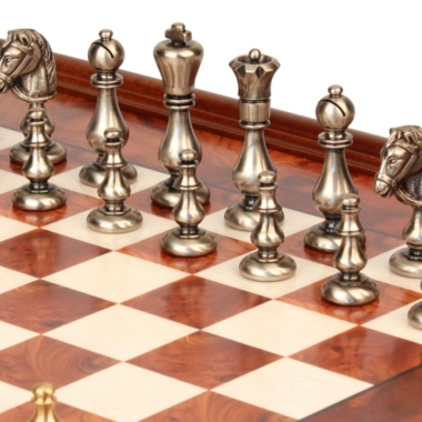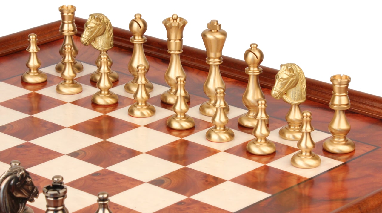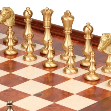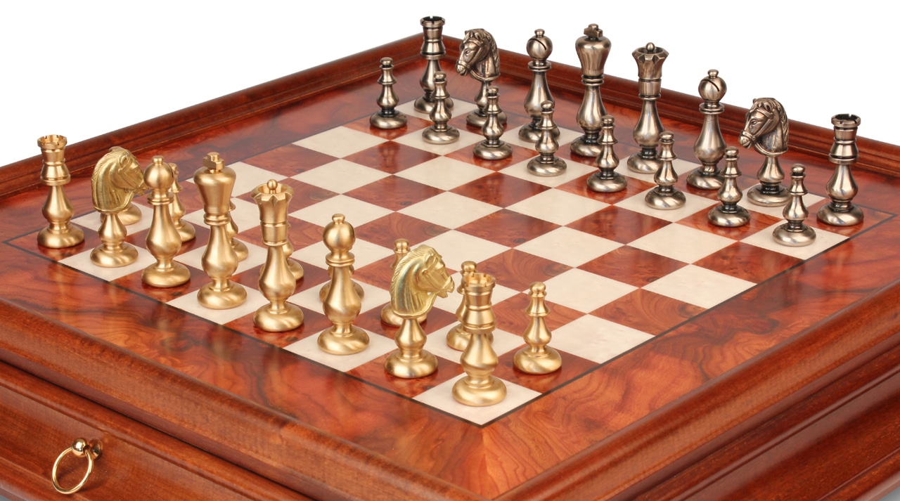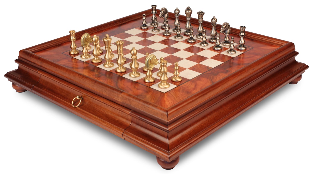 Juego de Ajedrez Oriental – Tablero de Madera de Brezo y Madera de Olmo con Cajón & Piezas de Latón Macizo