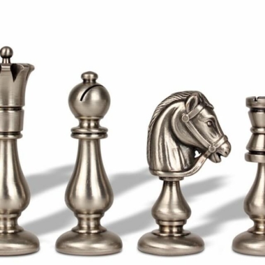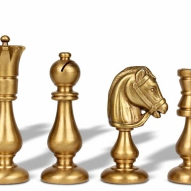 Las piezas del juego de ajedrez Oriental están fabricadas en latón macizo, con una altura de rey de 7,5 cm están esculpidas y pulidas a mano, cada pieza requiere un largo trabajo artesanal.