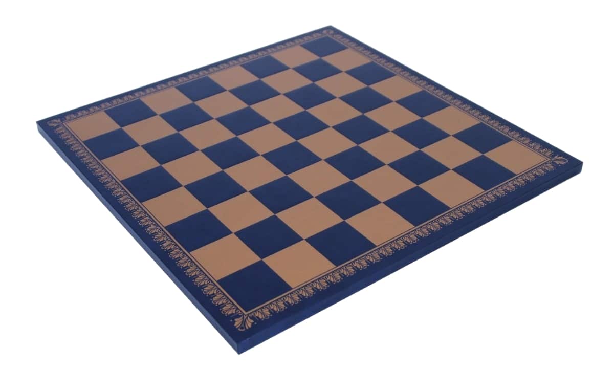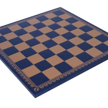 Vienen acompañadas de un tablero de ajedrez en similcuero azul y dorado de dimensiones 45 x 45 cm.