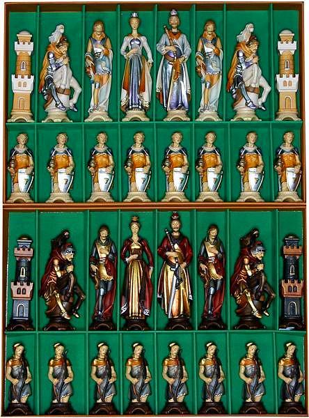 Un conjunto de piezas de ajedrez de coleccionista, realizado por artistas expertos de las escuelas de arte de Ortisei y Selva Gardena.