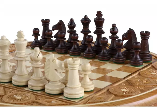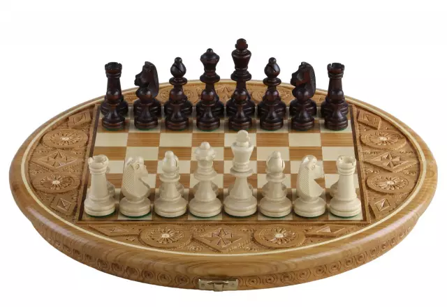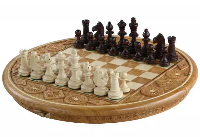 Juego de Ajedrez Rubin – Tablero Redondo Plegable con Almacenamiento en Madera Frutal