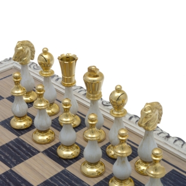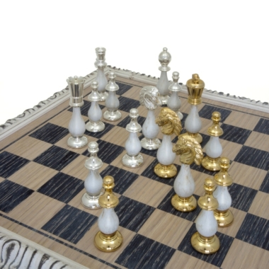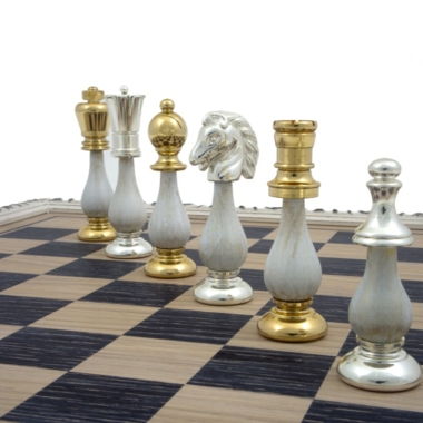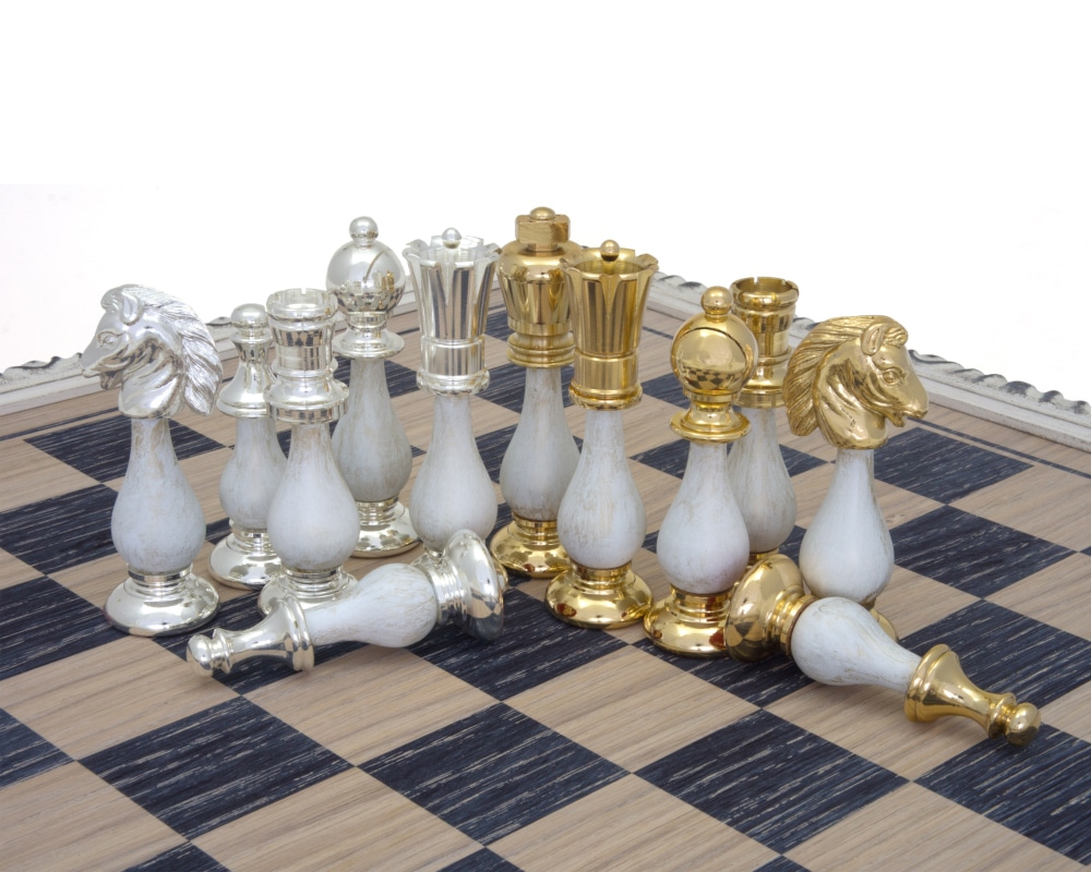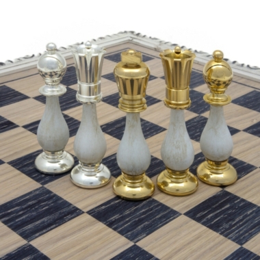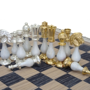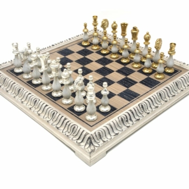 Juego de Ajedrez San Severo en Madera de Roble y Metal Chapado en Oro y Plata y Tablero de Ajedrez en Madera de Roble Florentino