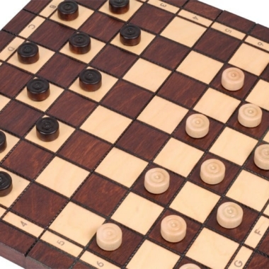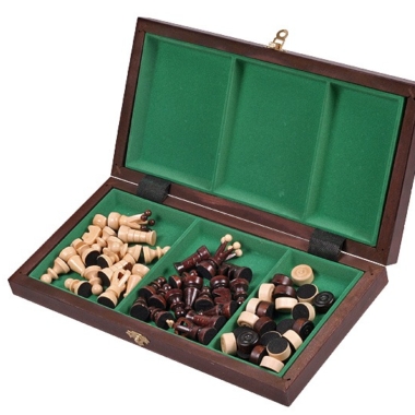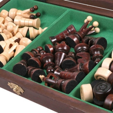 Las piezas de ajedrez con una altura de rey de 6 cm y las fichas del juego de damas están fabricadas en madera de tilo.