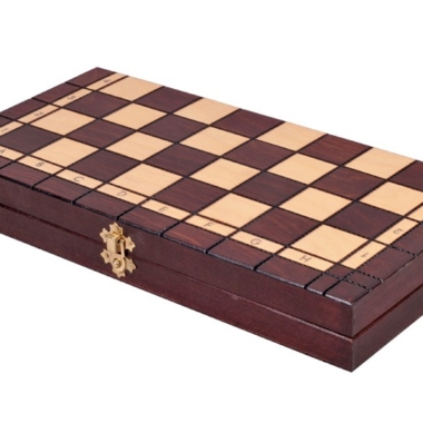 Pequeño conjunto de tablero de juego de madera 2 en 1 que permite jugar a ajedrez y damas.
