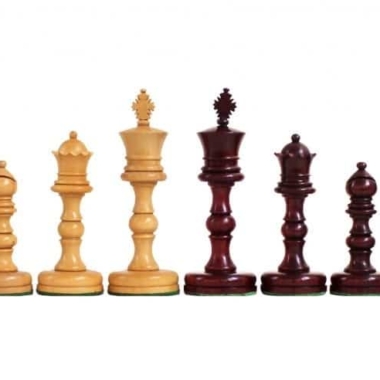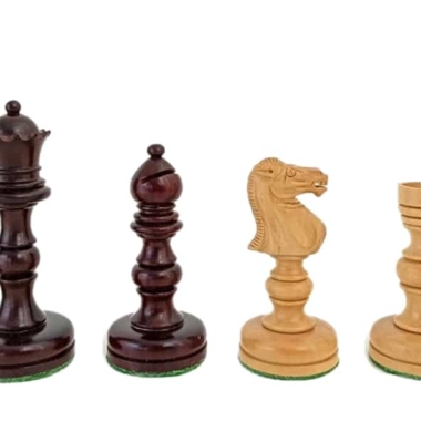 Las piezas de ajedrez de una altura de rey de 10,5 cm en madera de rosa oscura están esculpidas y pulidas a mano.