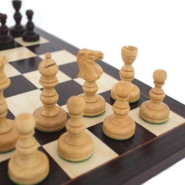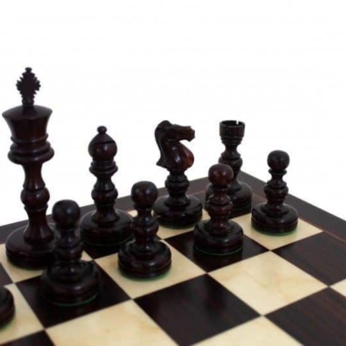 Vienen acompañadas de un tablero de ajedrez realizado con el mismo tipo de madera de rosa oscura. Su dimensión 43 x 43 cm con sus grandes casillas de 4,5 cm será perfecto para colocar las piezas de ajedrez.