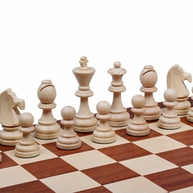 Un conjunto de juego de ajedrez de gran tamaño compuesto por piezas de ajedrez Staunton tamaño 7 (altura del rey 10 cm) y pesadas. Están fabricadas en madera de haya.