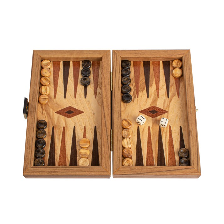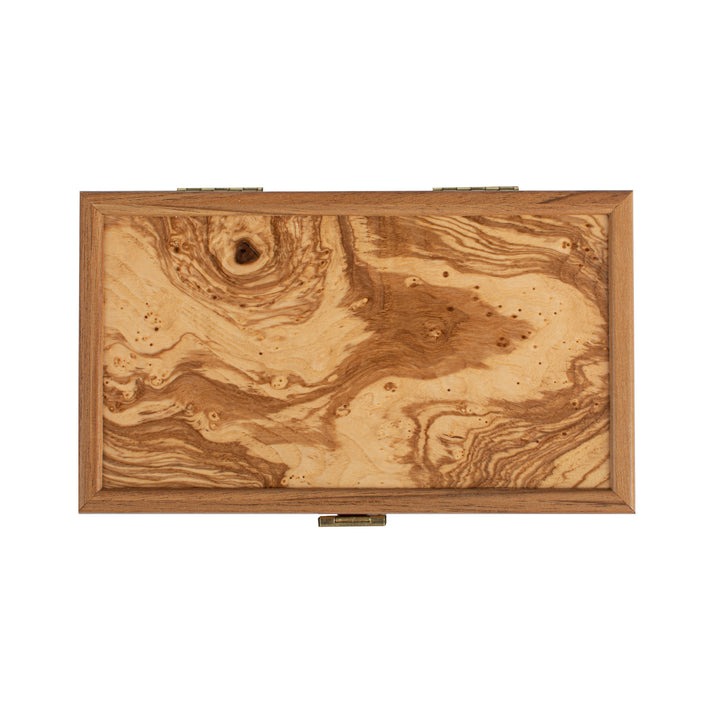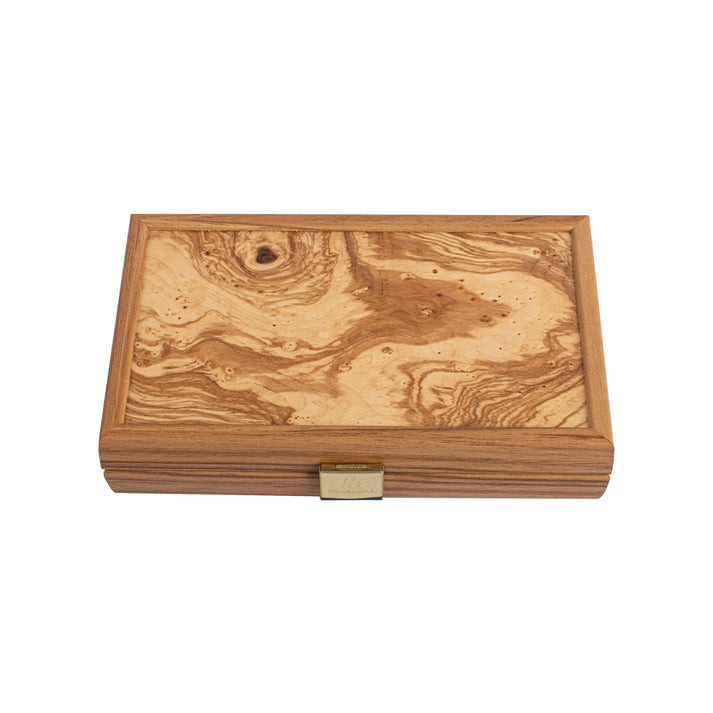 Pequeño Backgammon de Viaje en Raíz de Olivo con Fichas de Madera de Olivo