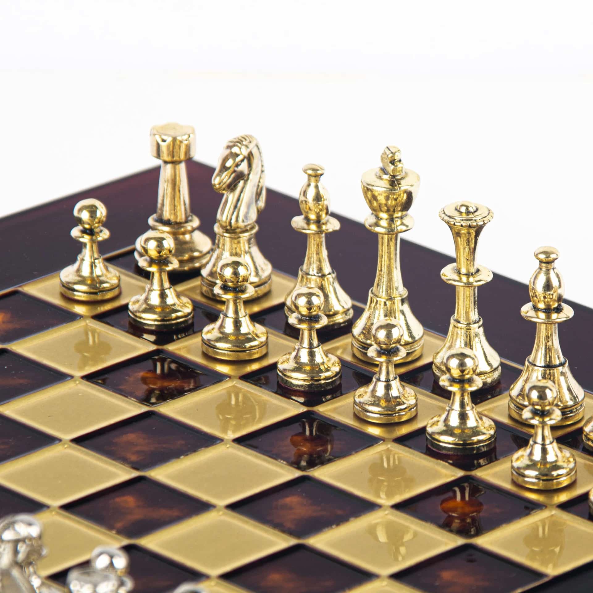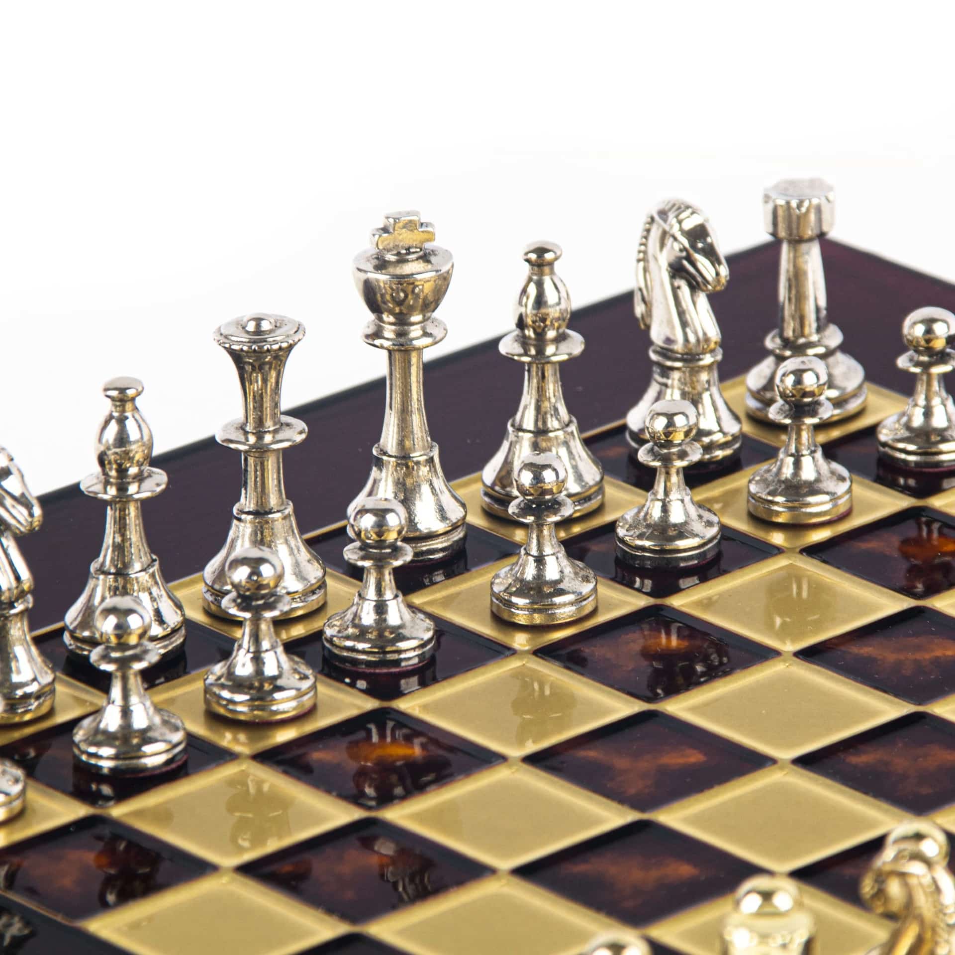 Ya seas un jugador apasionado o estés buscando el regalo perfecto para un amante del ajedrez, este conjunto Staunton en metal plateado y dorado sabrá seducir por su estética atemporal y su calidad excepcional.
