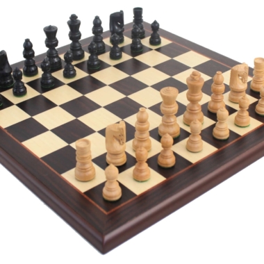 Las piezas de ajedrez artesanales están inspiradas en el estilo Staunton pero han sido rediseñadas. Con una altura de rey de 6 cm, están bien ponderadas.
