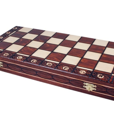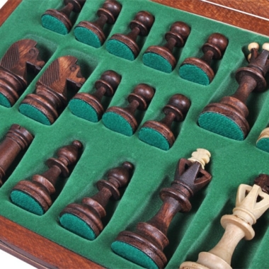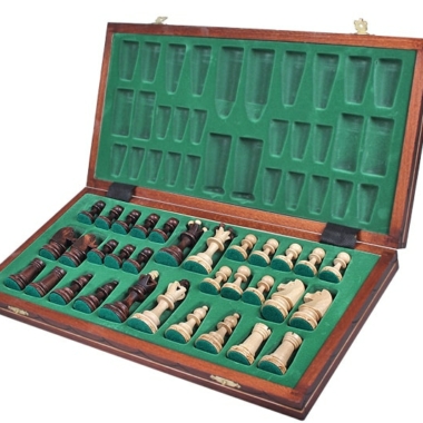 El tablero de ajedrez plegable de madera de abedul y de haya, de tamaño estándar 42 x 42 x 2,5 cm abierto (42 x 21 x 5 cm cerrado), cuenta con un compartimento individual para el almacenamiento de las piezas de ajedrez en su interior.
