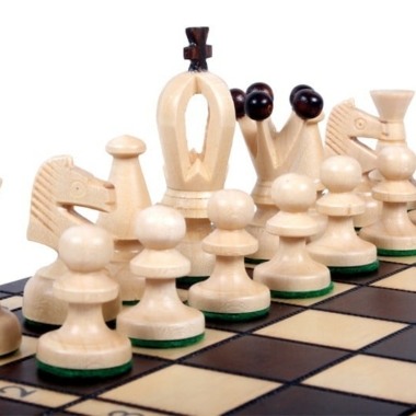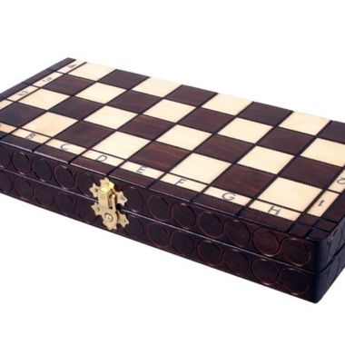 Vienen acompañadas de un tablero de ajedrez de madera de haya y abeto. El tablero de juego es plegable y alfanumérico, con una dimensión de 30 x 30 x 2,5 cm abierto (30 x 15 x 5 cm plegado) incluye dos compartimentos de almacenamiento para guardar las piezas de ajedrez.