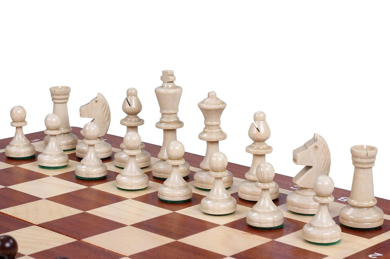 Un conjunto de juego de ajedrez de gama de entrada en madera, su práctico sistema plegable permite transportarlo fácilmente.
