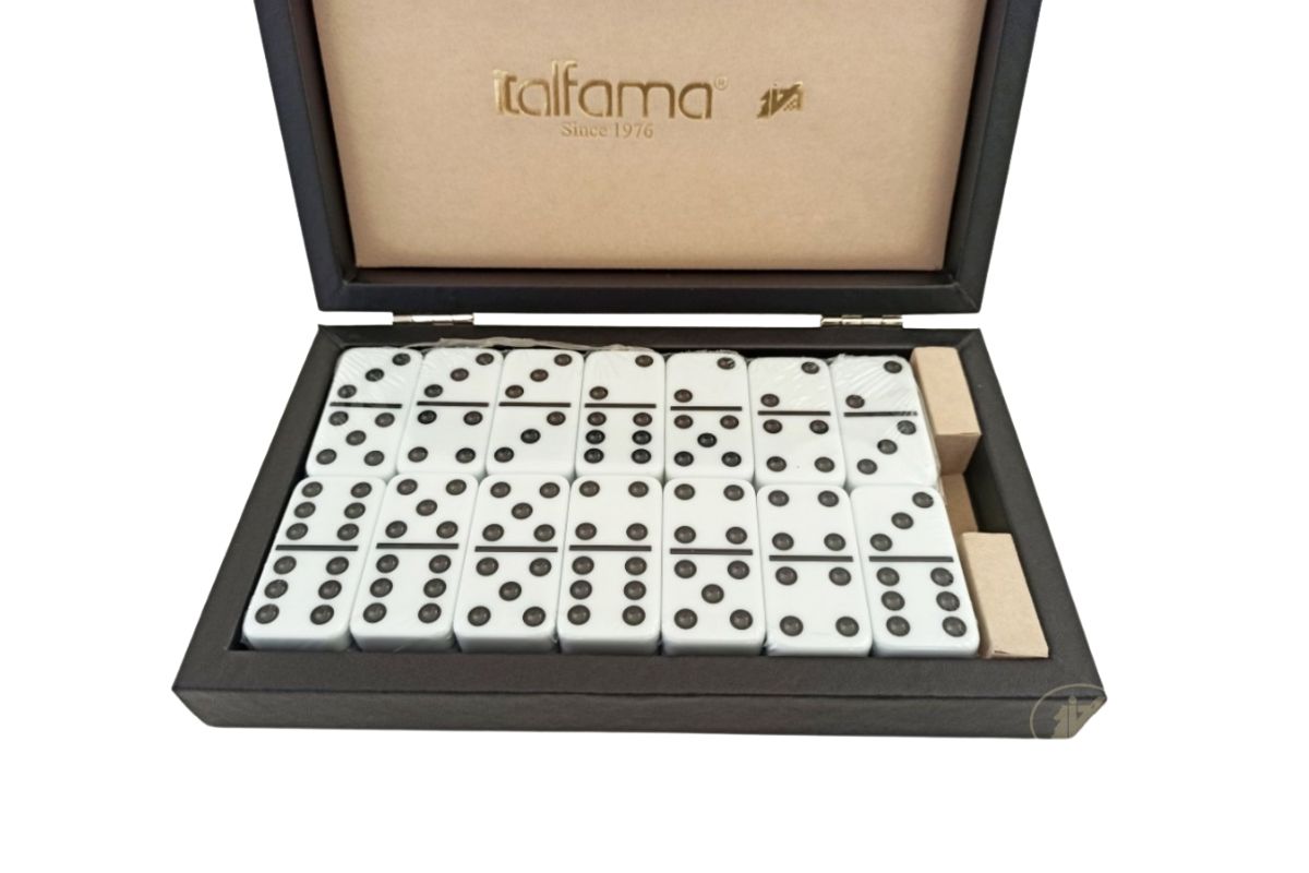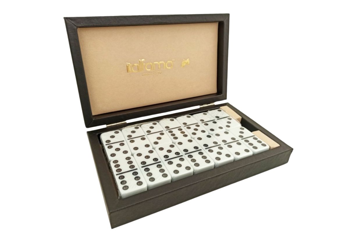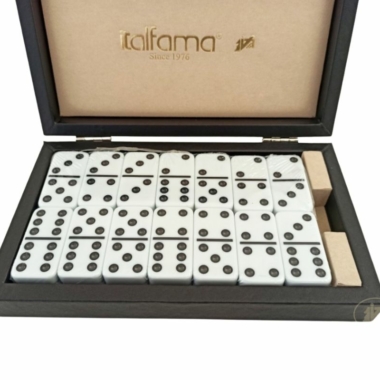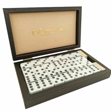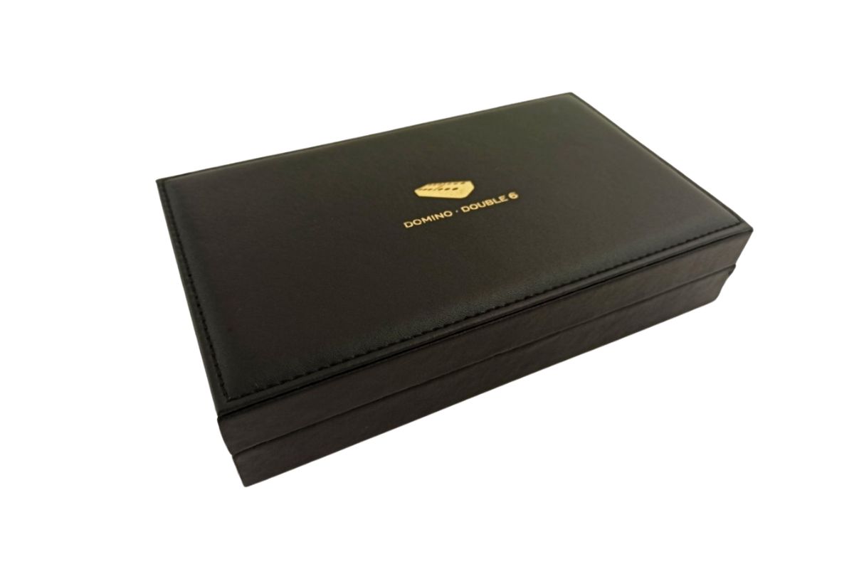 Disfruta ahora de una hermosa velada entre amigos con nuestro estuche de dominós y su caja de similicuir.