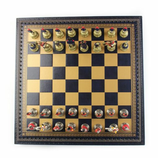 Juego de ajedrez de cuero Napoleón III y juego de ajedrez de metal sólido pintado a mano