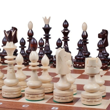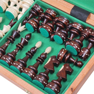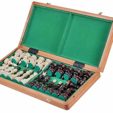 Este gran juego de ajedrez se ofrece con un hermoso tablero plegable de 50 x 50 x 3 cm (50 x 25 x 6 cm plegado).