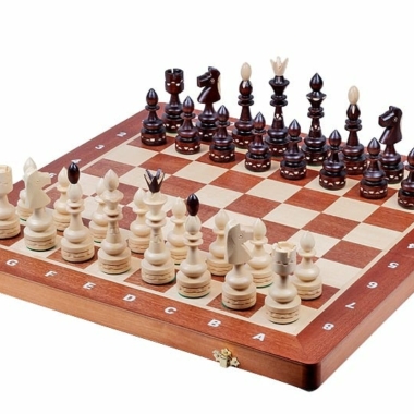 Este gran juego de ajedrez se ofrece con un hermoso tablero plegable de 50 x 50 x 3 cm (50 x 25 x 6 cm plegado).