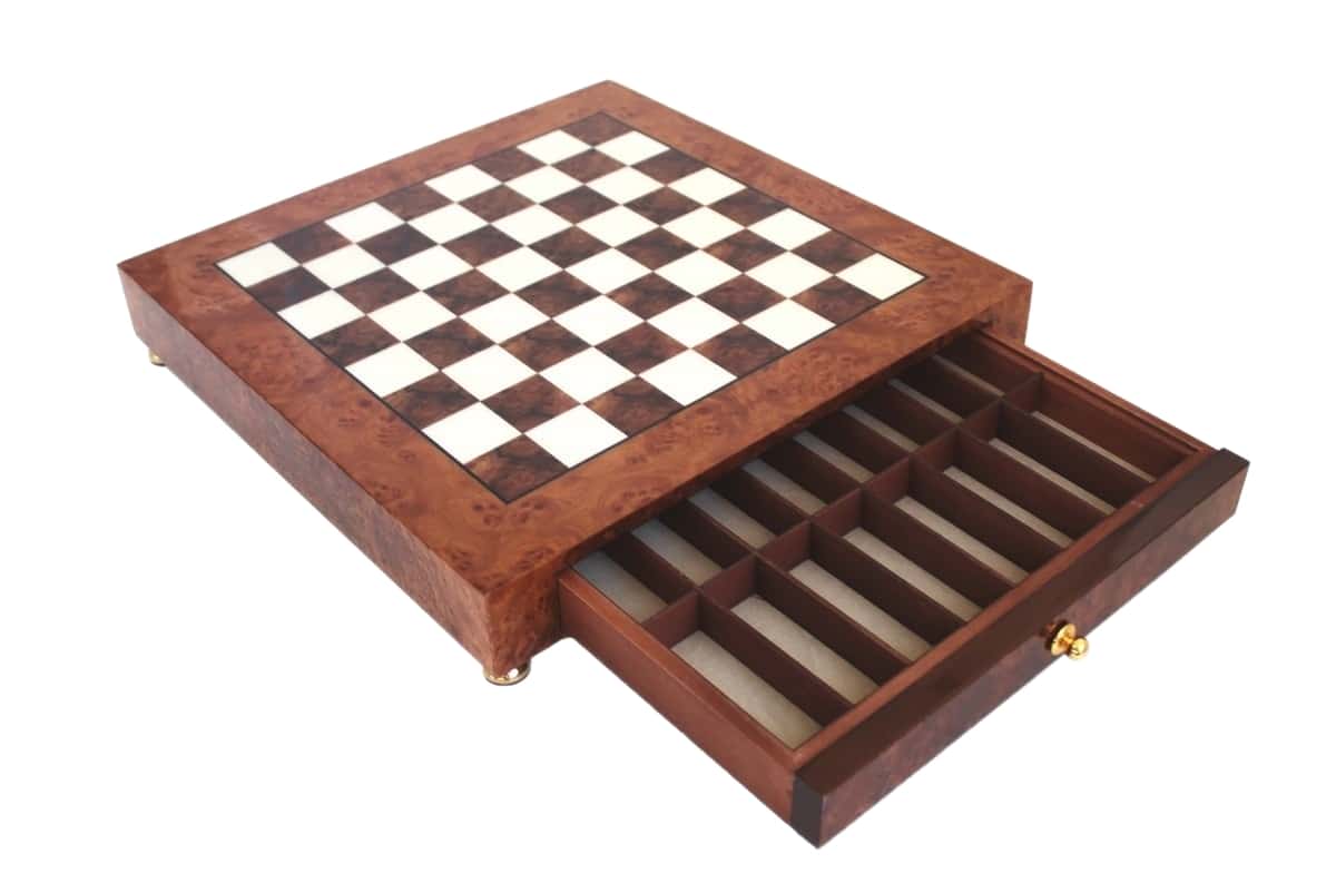 Tablero de Ajedrez en Madera de Brezo con Cajón de Almacenamiento