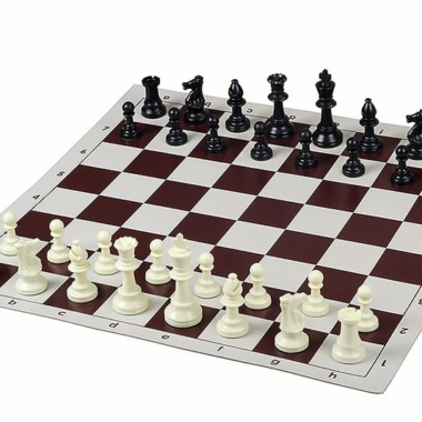 Tablero de Ajedrez Rollable con su Almacenamiento, Piezas de Ajedrez de Plástico y Reloj