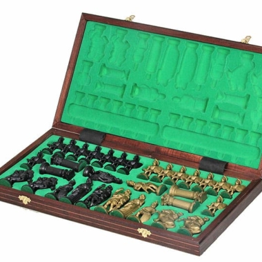 Tablero de Ajedrez Plegable de Madera y Piezas de Ajedrez Espartanas con Almacenamiento