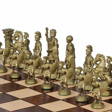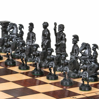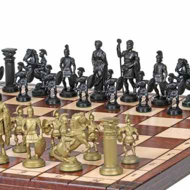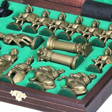 Las figuritas del set de juego de ajedrez están realizadas con el tema de los Espartanos, son de gran tamaño con una altura de rey de 10 cm. Están hechas de plástico y son ponderadas.