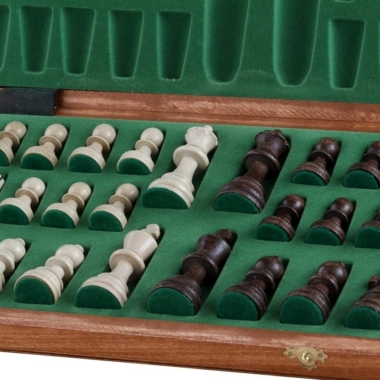 Se acompaña de piezas de ajedrez de madera con una altura de rey de 9 cm, bien ponderadas son agradables de manipular.