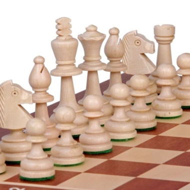 Compuesto por piezas de ajedrez con peso, están fabricadas en madera de tilo y tienen una altura de rey de 8 cm. Cabe destacar que el conjunto incluye 34 piezas (32 + 2 reinas).